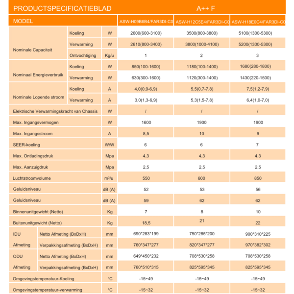 ✓ A++ energie-efficiëntie met invertertechnologie