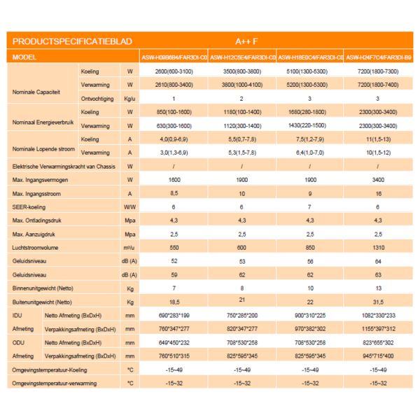 ✓ A++ energie-efficiëntie met invertertechnologie