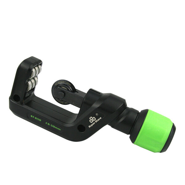 De pijpsnijder ST-650 van Super Stars is uniek in zijn klasse. Vanwege de prijs prestatie van de pijpsnijder is dit een “must have†voor iedere HVAC koeltechnische installateur. Doordat pijpsnijder gelagerd is loopt de buis tussen 7 kogellagers loopt waarvan 6 stuks aan de bovenkant voor begeleiding van de buis en 1 stuk in het snijwiel zit is iedere keer een buis afkorten weer fantastisch. Omdat de pijpsnijder ST-650 zo goed gelagerd is, is de kans op schuin snijden vrijwel onmogelijk. omdat de pijpsnijder gelagerd is en perfect is uitgevoerd ervaart u dit als een lichte bewerking van de buis.