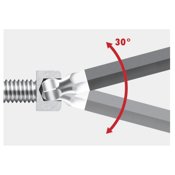 - Lange zijde met kogelkop om werken aan moeilijk bereikbare schroeven te vergemakkelijken